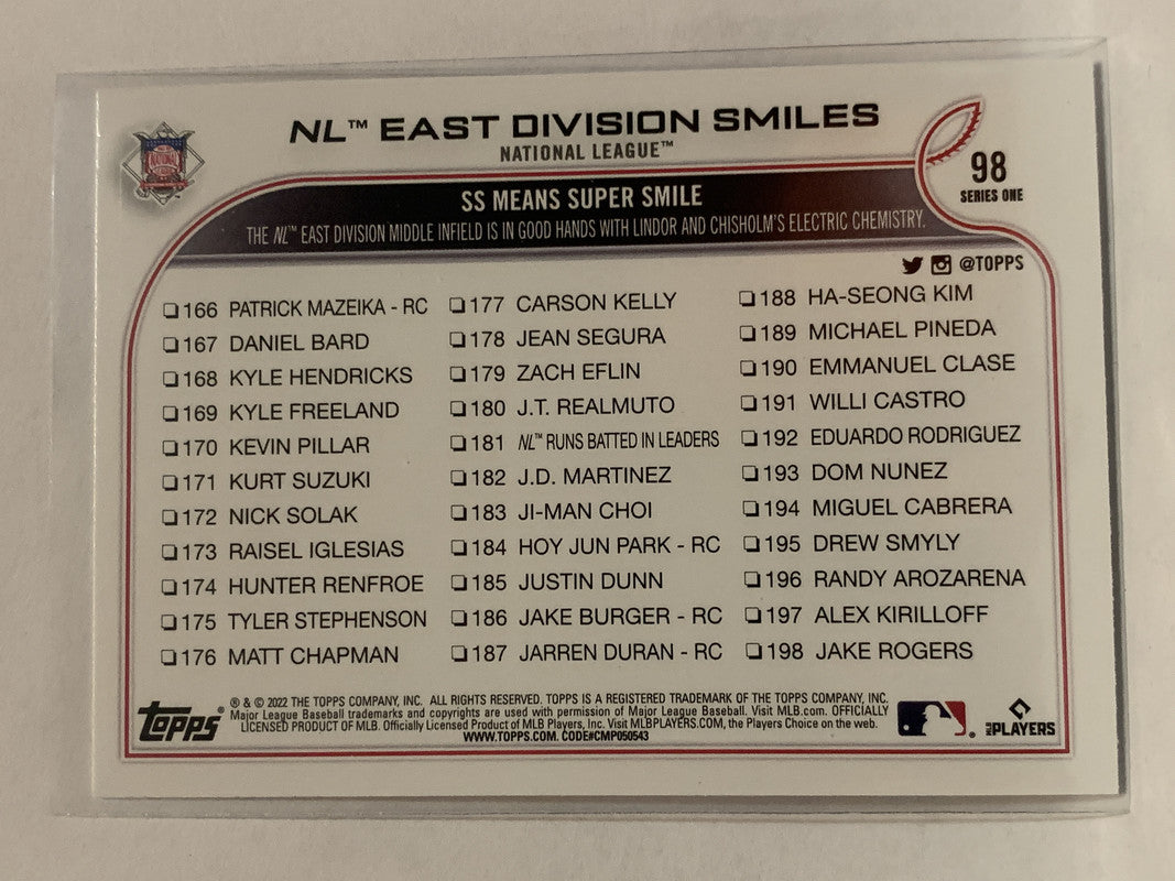 #98 East Division Smiles 2022 Topps Series One Baseball Card MLB