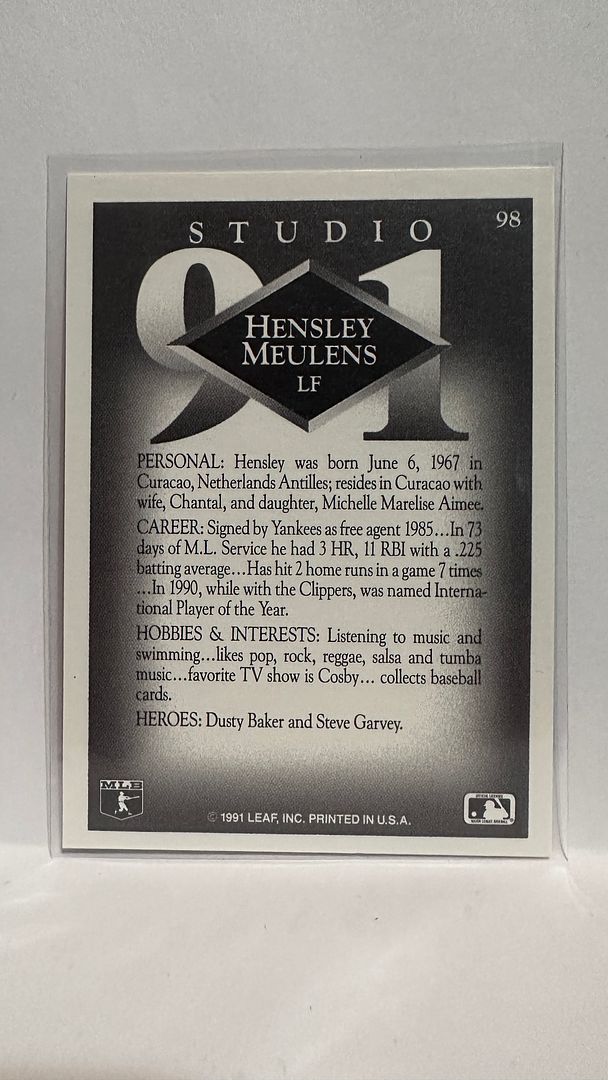 #98 Hensley Meulens New York Yankees 1991 Studio Baseball Card