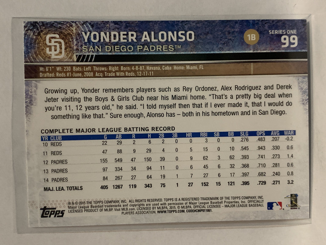 #99 Yonder Alonso San Diego Padres 2015 Topps Series One Baseball Card