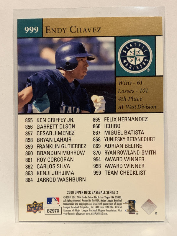 #999 Endy Chavez Checklist Seattle Mariners 2009 Upper Deck Series Two Baseball Card MLB
