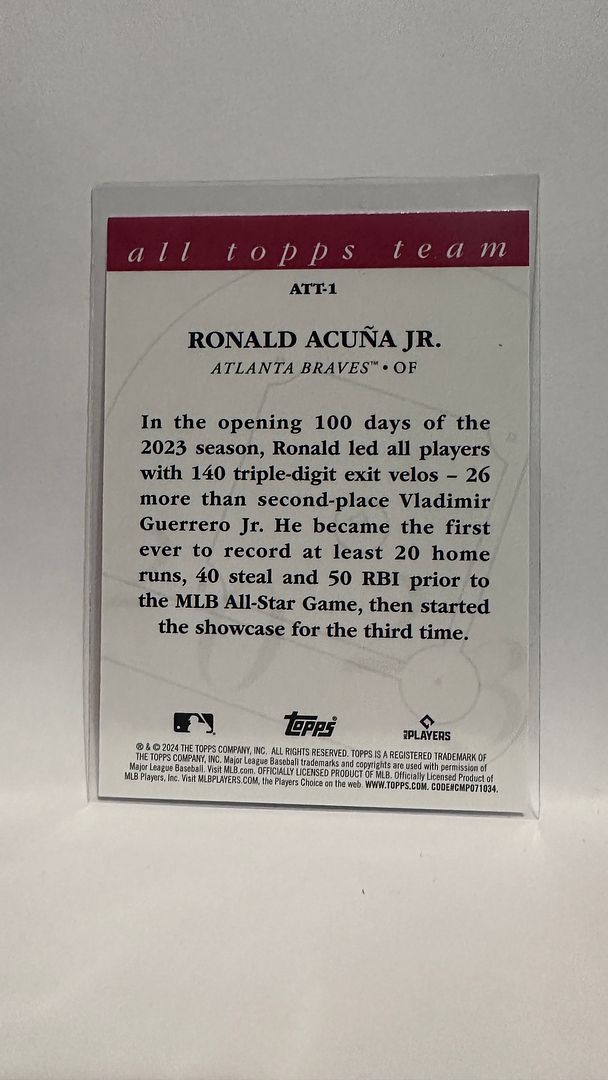 #ATT-1 Ronald Acuna Jr All Topps Team Atlanta Braves 2024 Topps Baseball Card