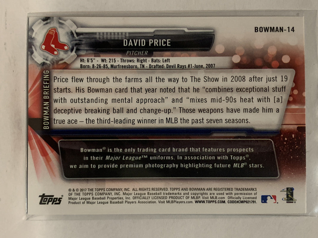 #Bowman-14 David Price Boston Red Sox 2017 Topps Series One Baseball Card