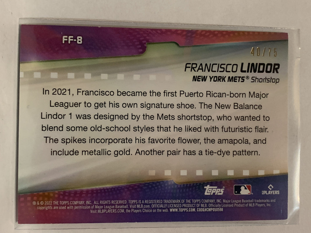 #FF-8 Francisco Lindor 40/75 New York Mets 2022 Topps Series One Baseball Card MLB