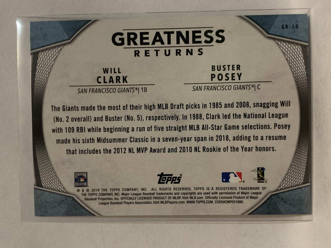 #GR-16 Will Clark Buster Posey San Francisco Giants 2019 Topps Series One Baseball Card