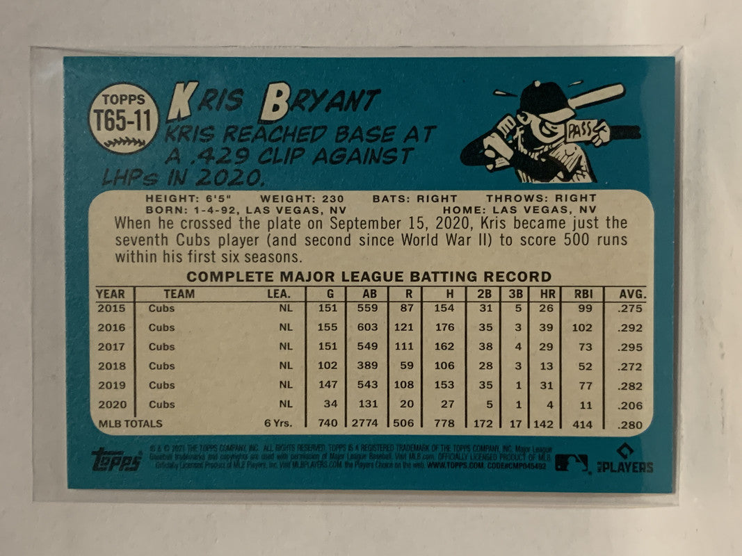 #T65-11 Kris Bryant Chicago Cubs 2021 Topps Series 2 Baseball Card