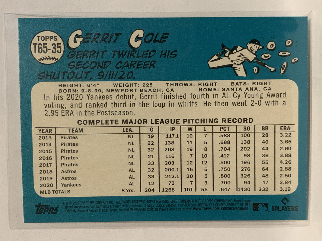 #T65-35 Gerrit Cole New York Yankees 2021 Topps Series 2 Baseball Card