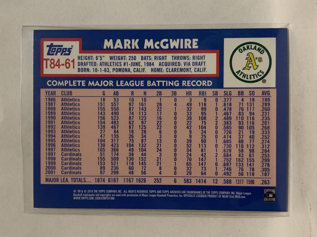 #T84-61 Mark McGwire Oakland Athletics 2019 Topps Series One Baseball Card