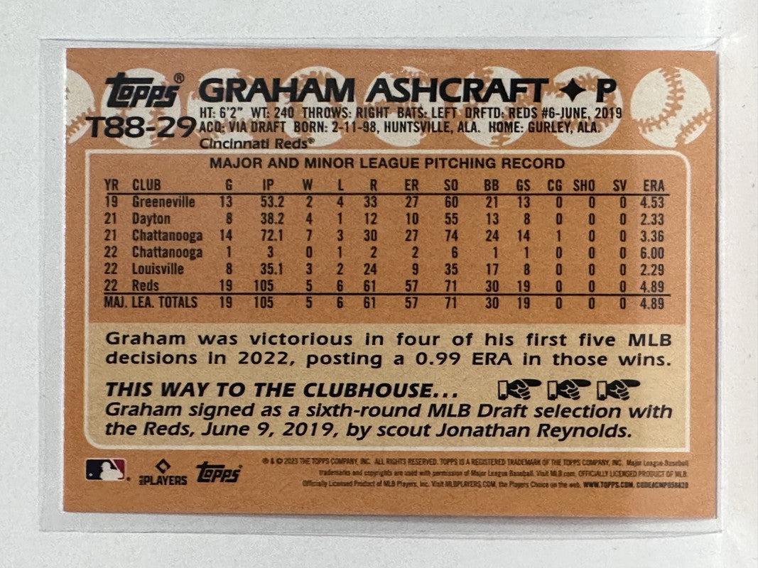 #T88-29 Graham Ashcraft Rookie Cincinnati Reds 2023 Topps Series One Baseball Card