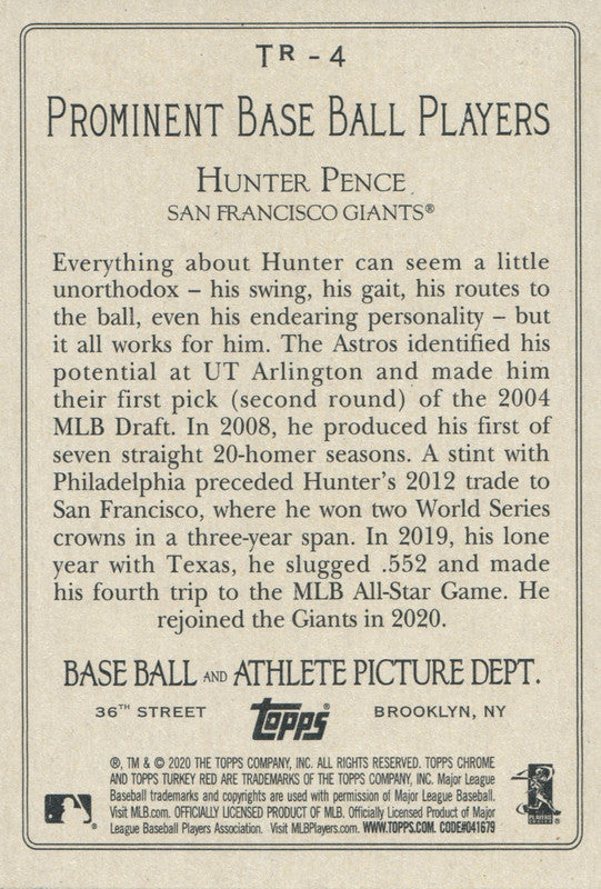 TR-4 Hunter Pence San Francisco Giants 2020 Topps Update Baseball Card