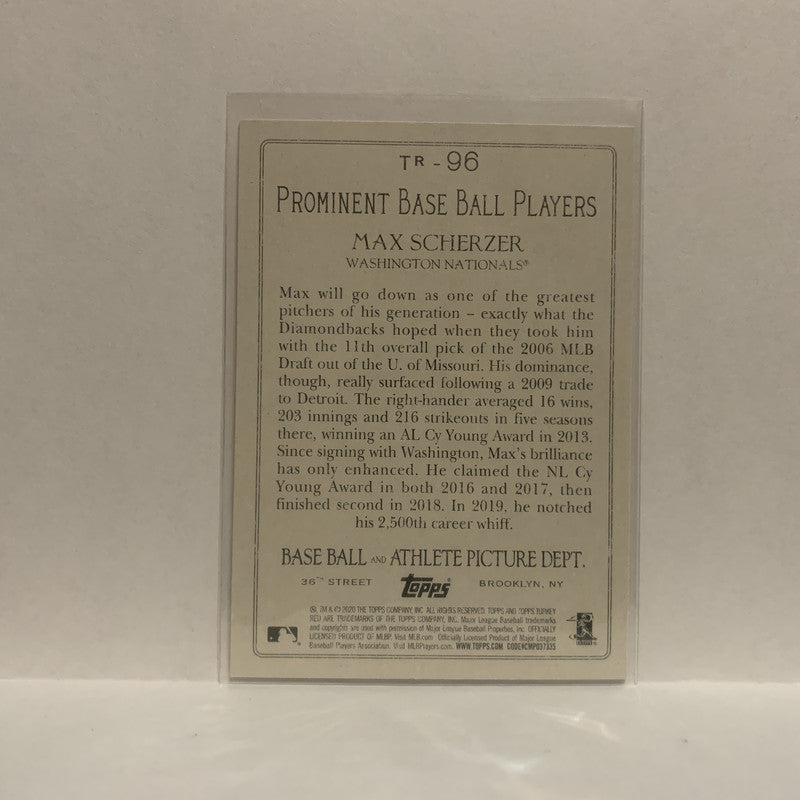TR-96 Max Scherzer Washington Nationals 2020 Topps Series One Baseball Card JD