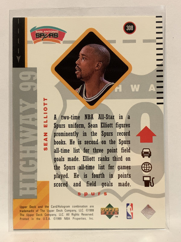 #308 Sean Elliott H99 San Antonio Spurs 1998-99 Upper Deck Basketball Card NBA