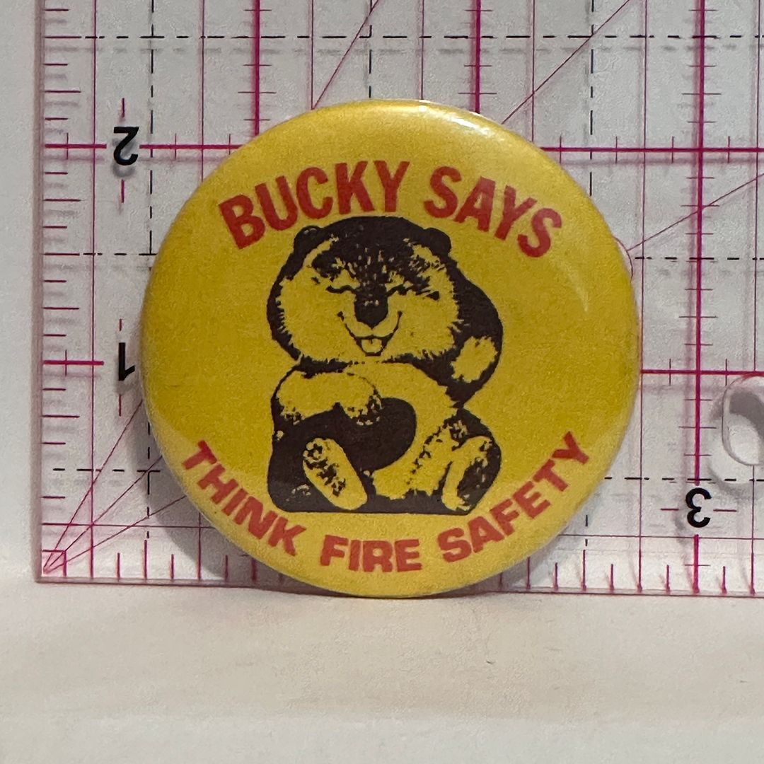 Bucky Says Think Fire Safety Beaver Button Pinback