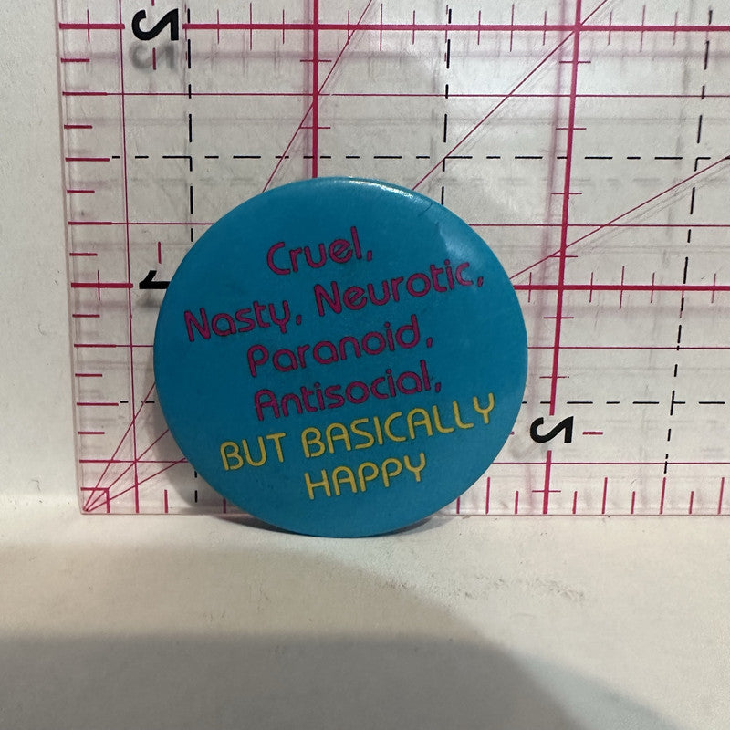 Cruel Nasty Neurotic But Basically Happy Button Pinback