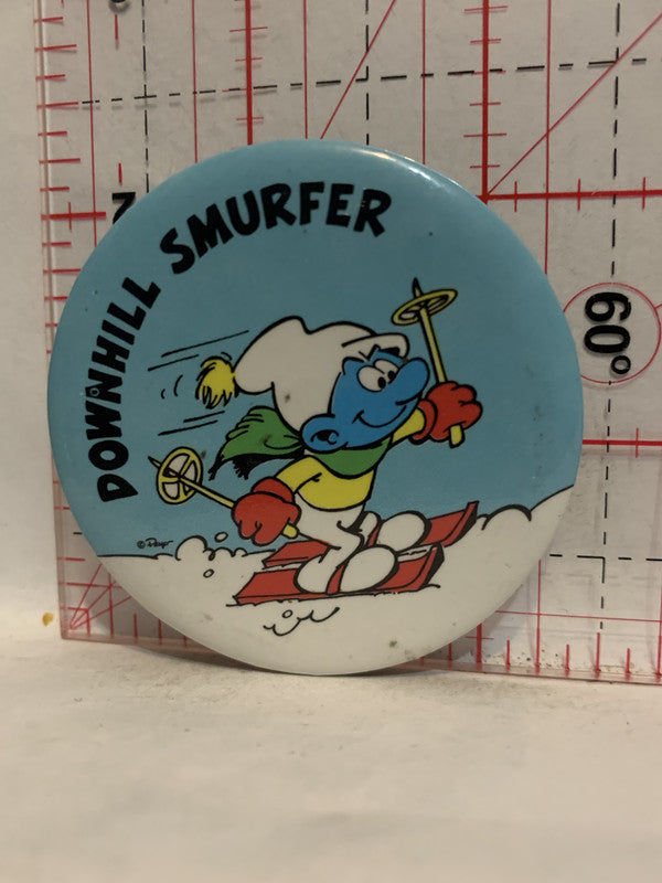 Downhill Smurfer Peyo Cartoon Button Pinback