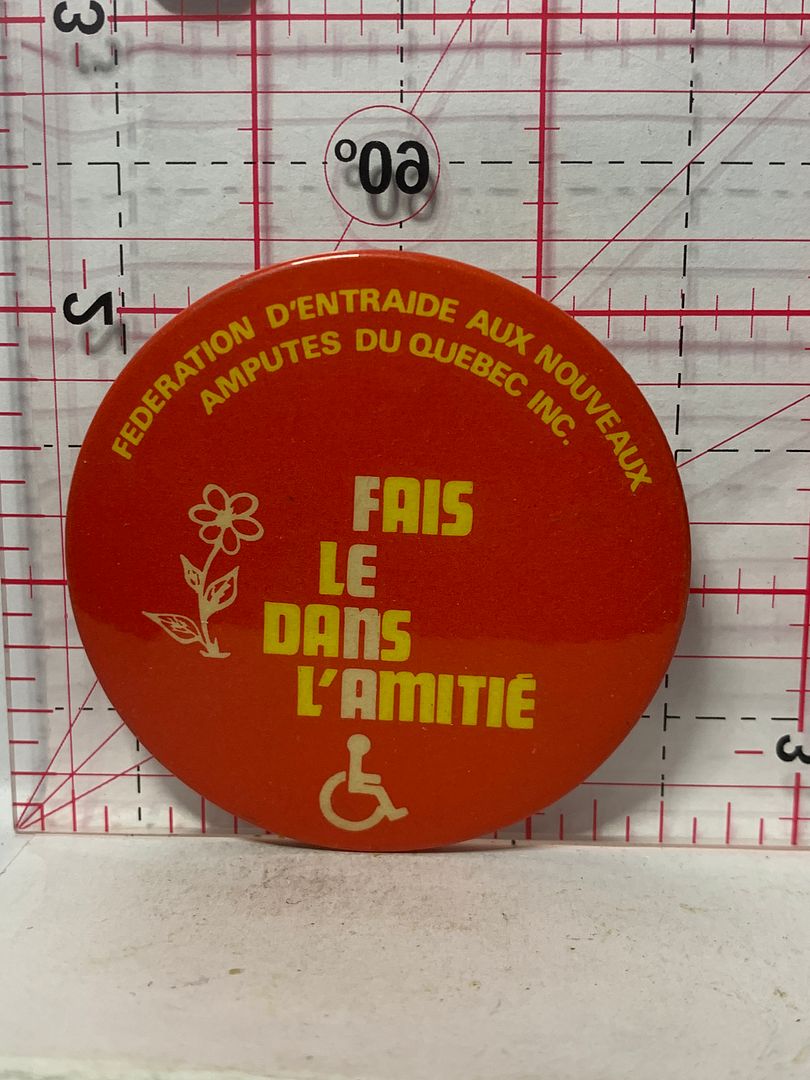Fais le Dans l'amitie Federation D'Entraide aux Nouve aux ampules Du Quebec Button Pinback