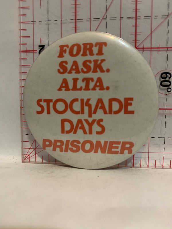 Fort Sask Alta Stockade Days Prisoner Button Pinback