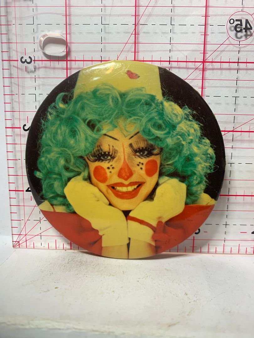 French TV Clown Female Button Pinback