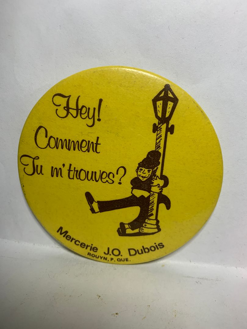 Hey Comment Tu m'trouves Meccerre JD Dubois Rouyn Quebec Button Pinback