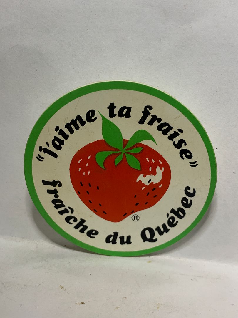 J'aime to Fraise Fraiche du Quebec Strawberry Button Pinback