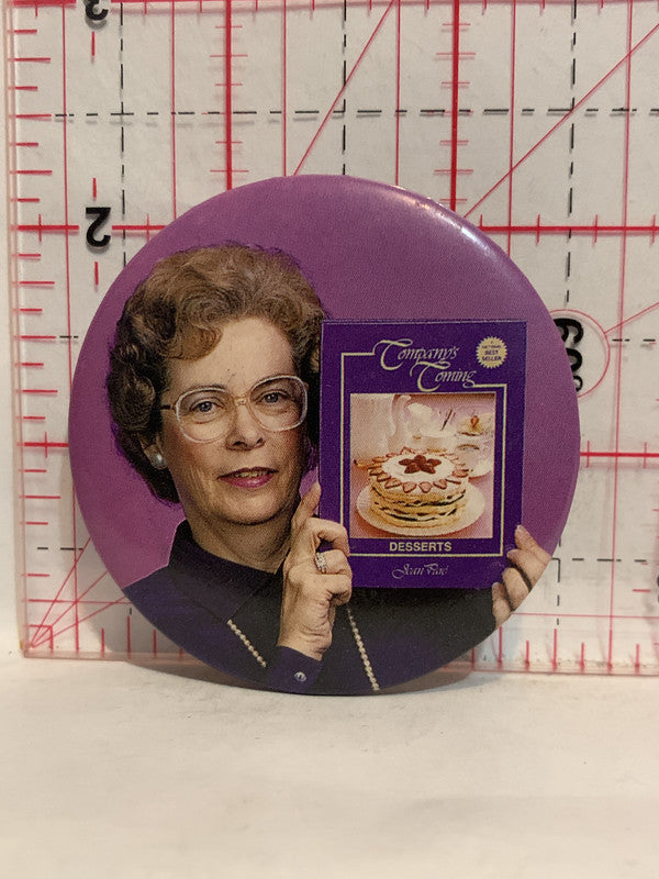 Jean Pare Desserts Company's Coming Cookbook Button Pinback