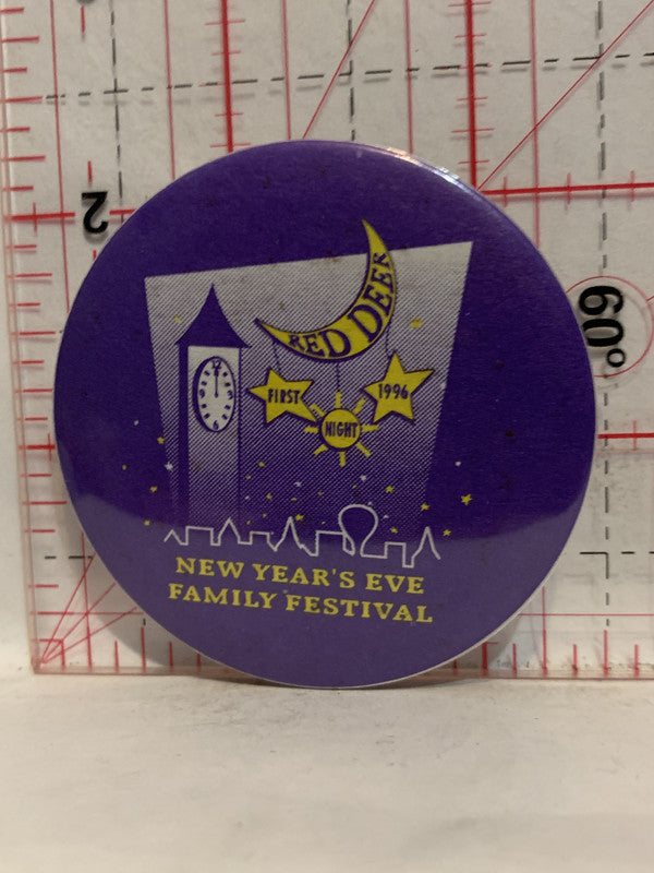 New Years Eve Family Festival 1996 Red Deer Button Pinback
