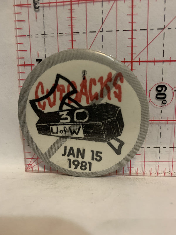 No Cutbacks 30 U of W Jan 1981 Button Pinback