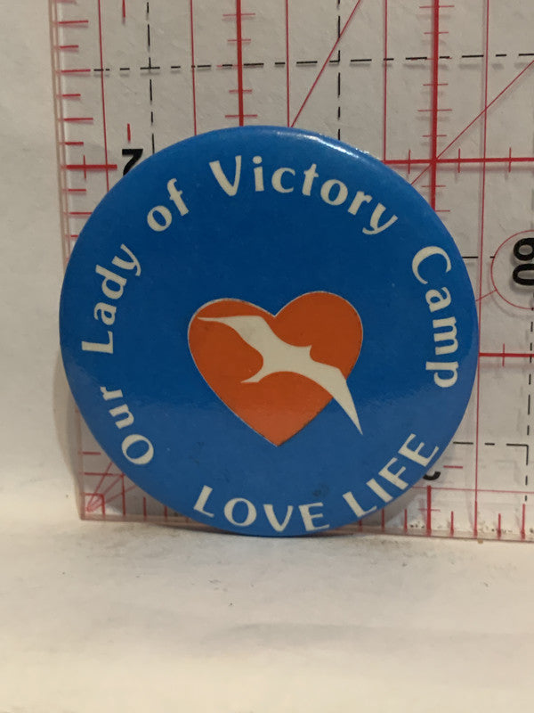 Our Lady of Victory Camp Love Life Logo Button Pinback