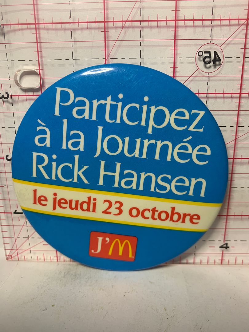 Participez a la Journee Rick Hansen Mcdonalds Button Pinback