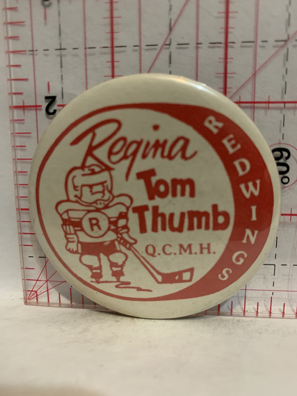 Regina Tom Thumb QCMH Redwings Hockey Button Pinback