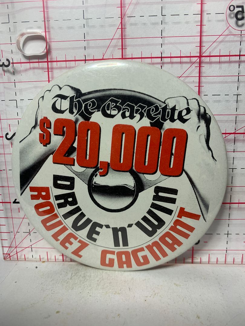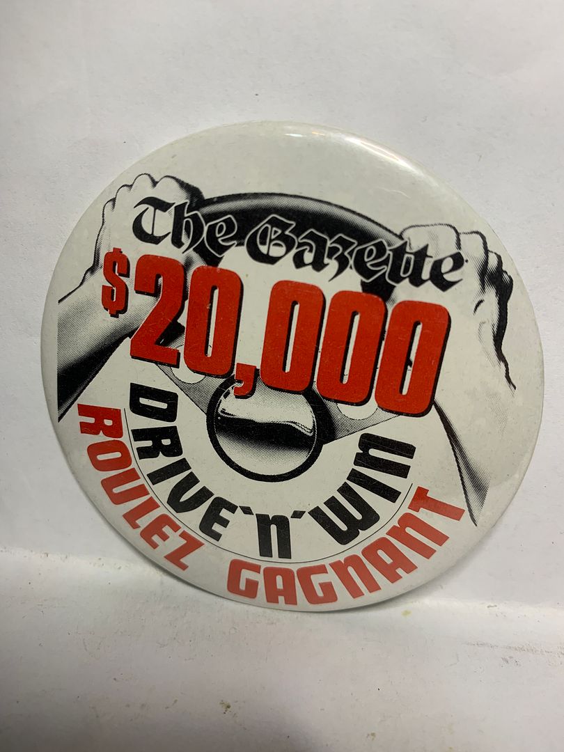The Gazette Drive n win Roulez gagnart AD Button Pinback