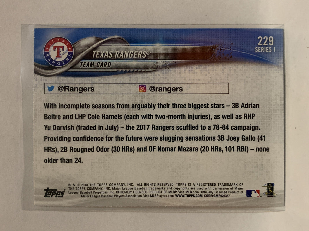 #229 Texas Rangers Team Card 2018 Topps Series One Baseball Card MLB