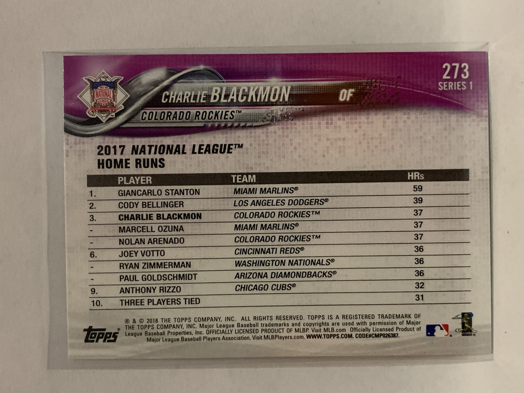 #273 Charlie Blackmon League Leaders Colorado Rockies 2018 Topps Series One Baseball Card MLB