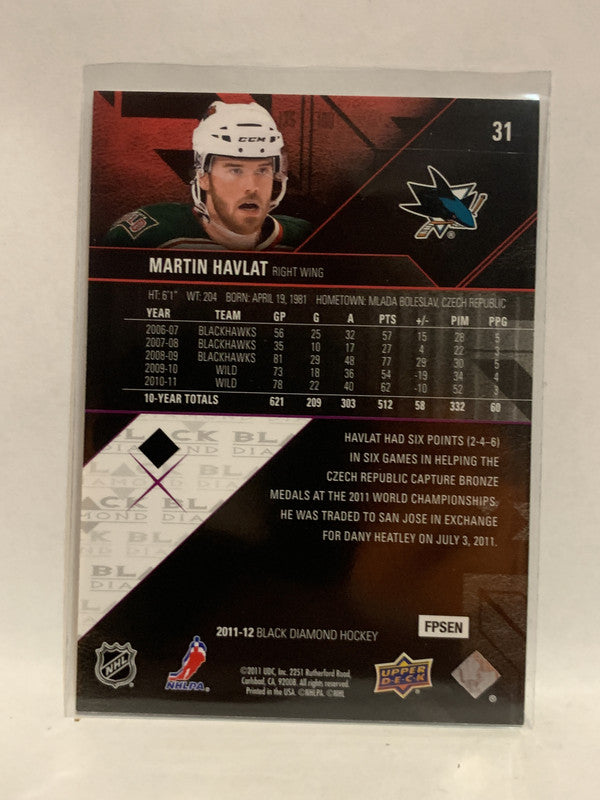 #31 Martin Havlet San Jose Sharks 2011-12 Black Diamond Hockey Card NHL