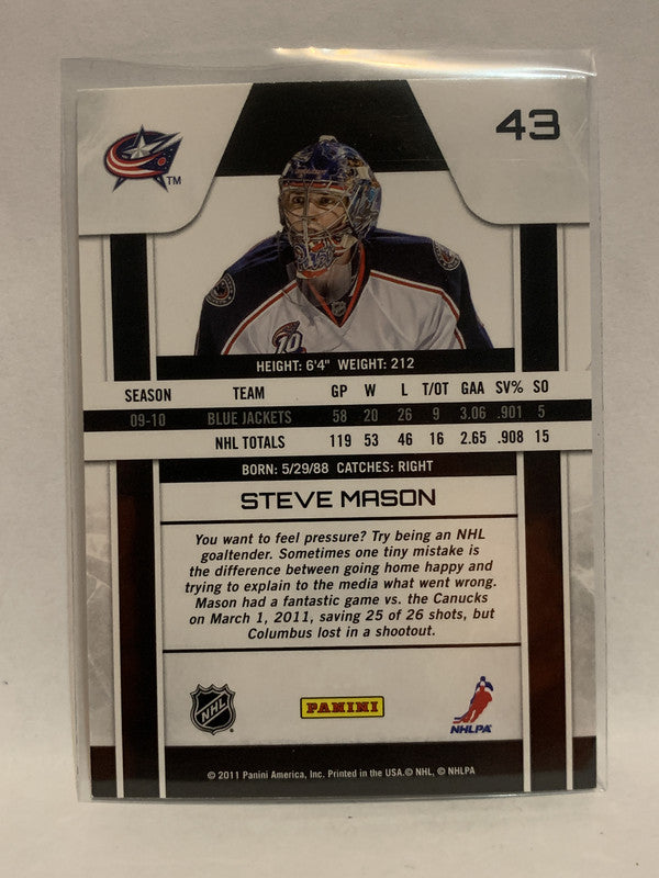 #43 Steve Mason Columbus Blue Jackets 2011-12 Zenith Hockey Card NHL