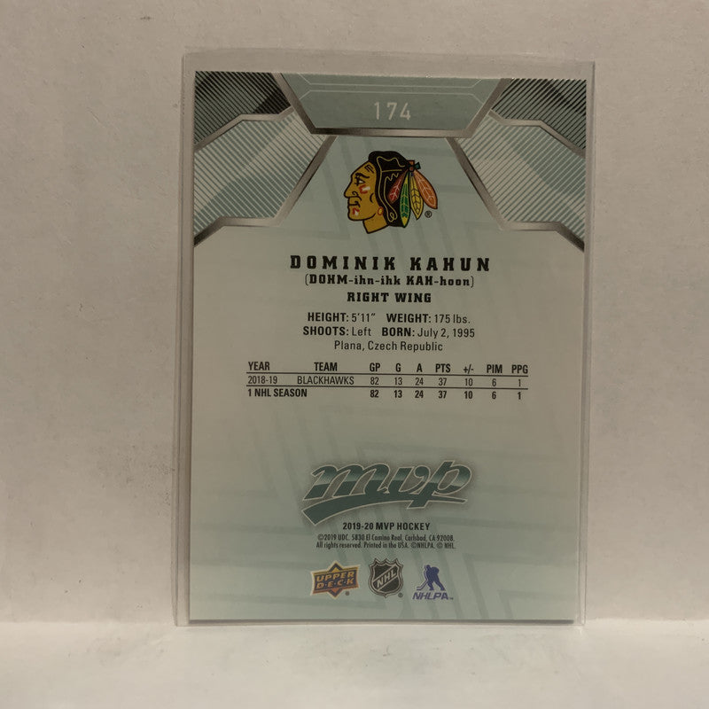 #174 Dominik Kahun Chicago Blackhawks 2019-20 Upper Deck MVP Hockey Card KR