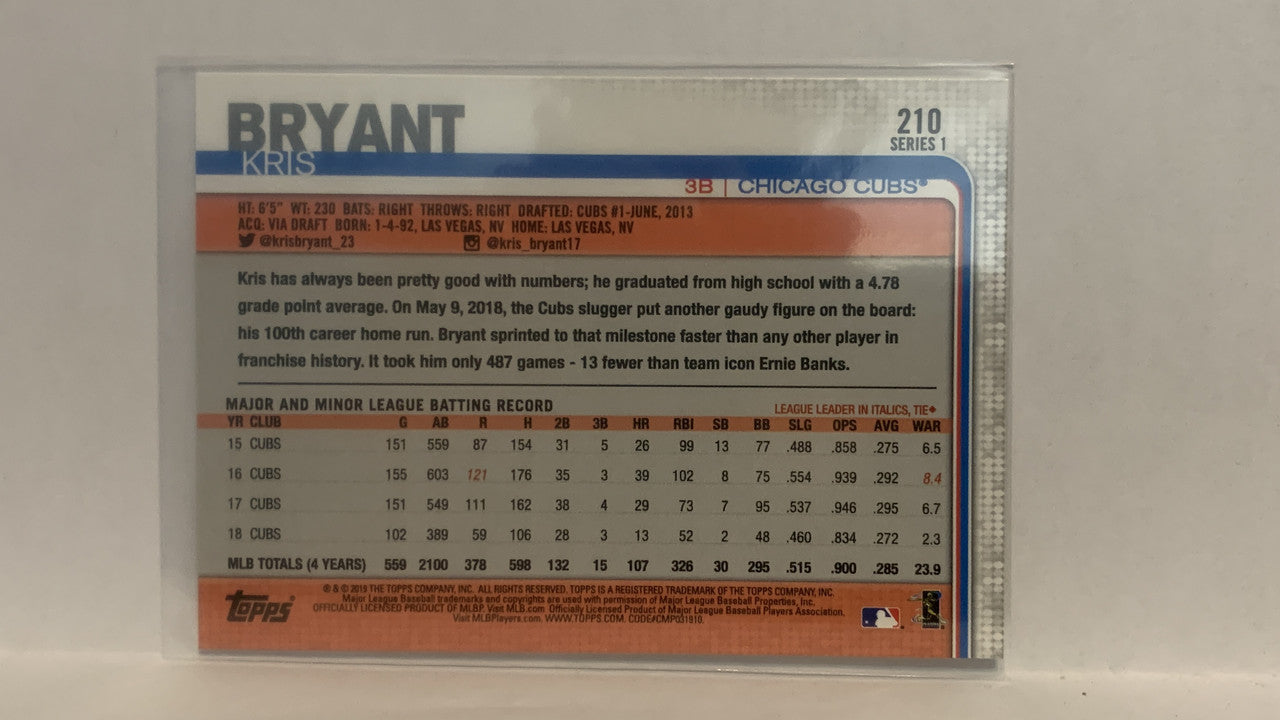 #210 Kris Bryant Chicago Cubs 2019 Topps Series 1 Baseball Card