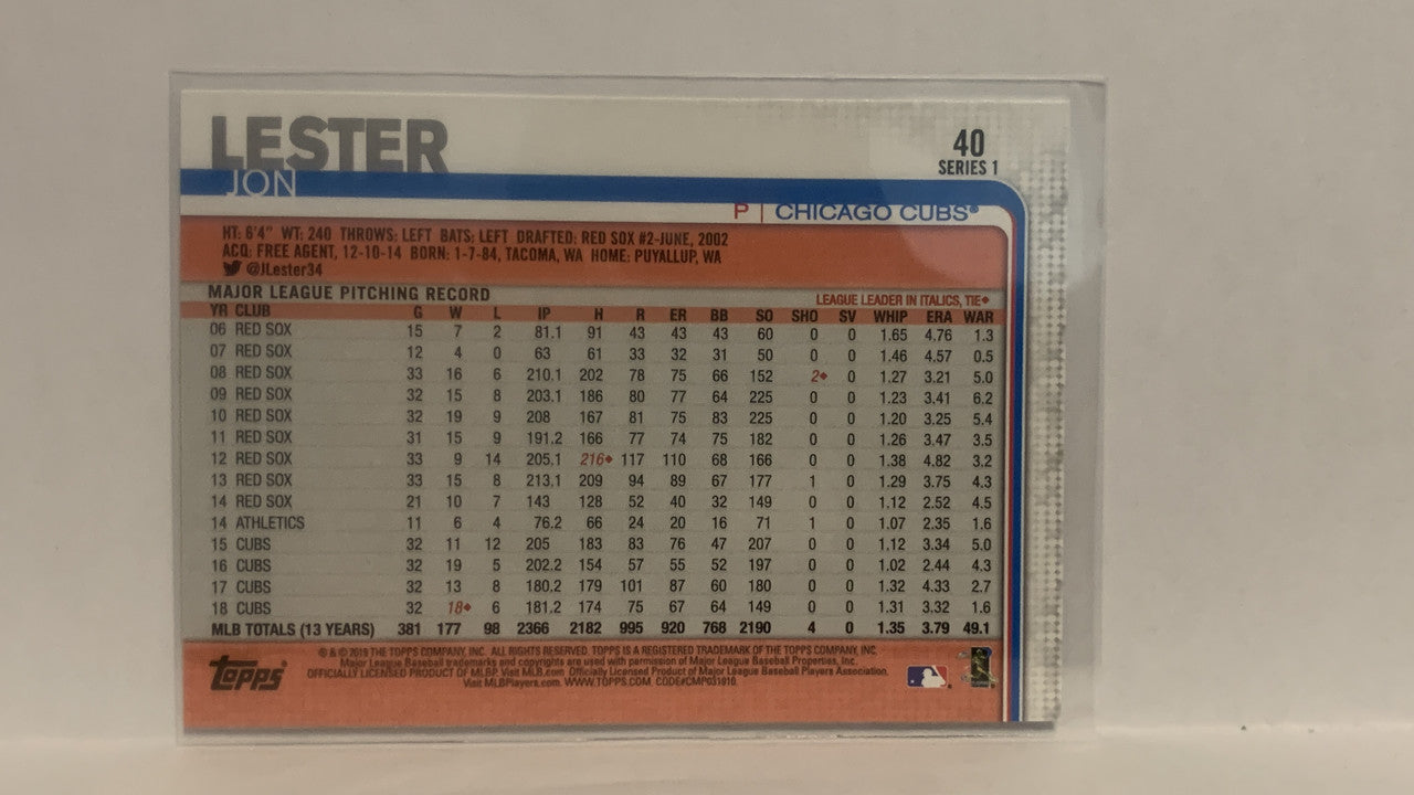 #40 Jon Lester Chicago Cubs 2019 Topps Series 1 Baseball Card