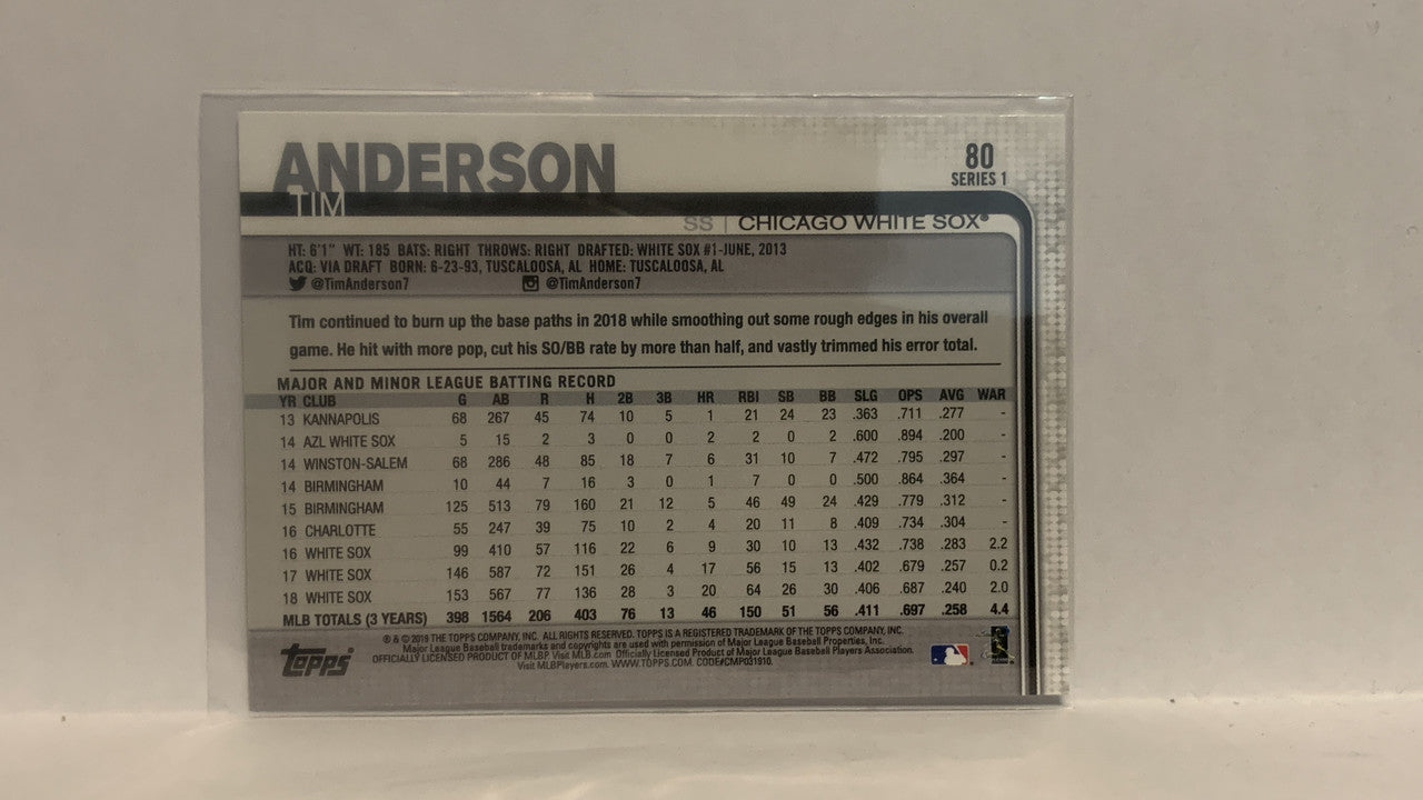 #80 Tim Anderson Chicago White Sox 2019 Topps Series 1 Baseball Card