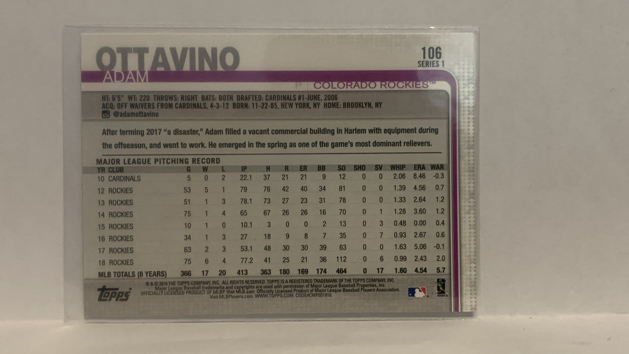 #106 Adam Ottavino Colorado Rockies 2019 Topps Series 1 Baseball Card