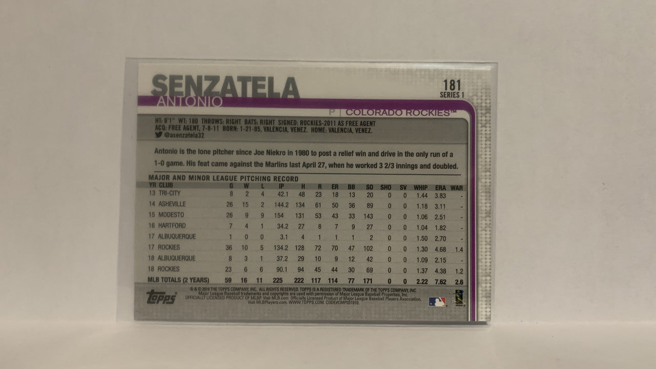 #181 Antonio Senzatela Colorado Rockies 2019 Topps Series 1 Baseball Card