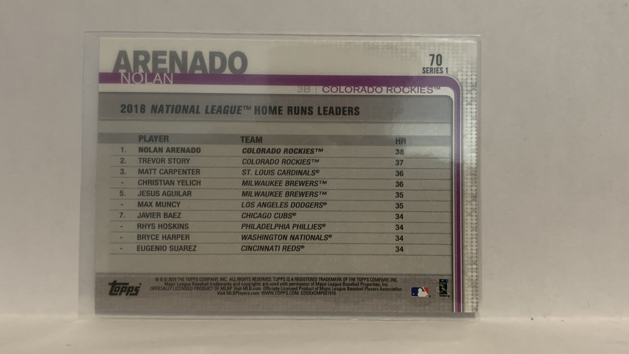 #70 Nolan Arenado League Leaders Colorado Rockies 2019 Topps Series 1 Baseball Card