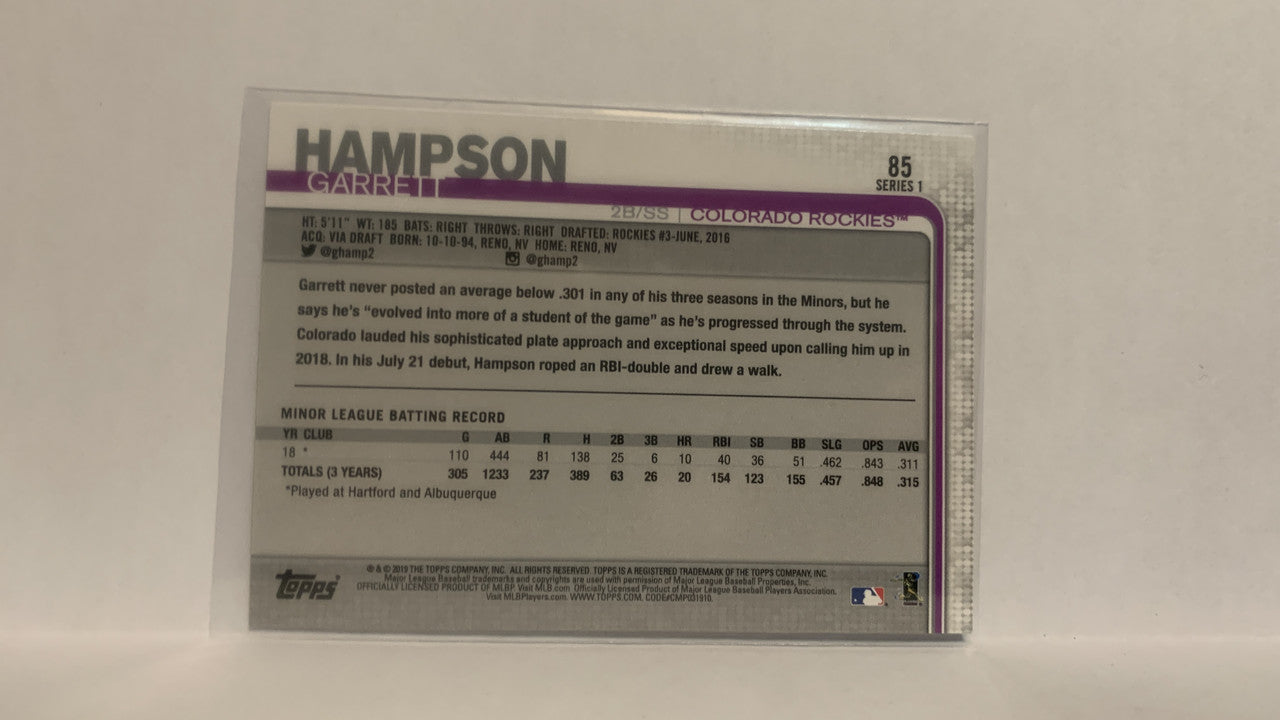 #85 Garrett Hampson Rookie Colorado Rockies 2019 Topps Series 1 Baseball Card