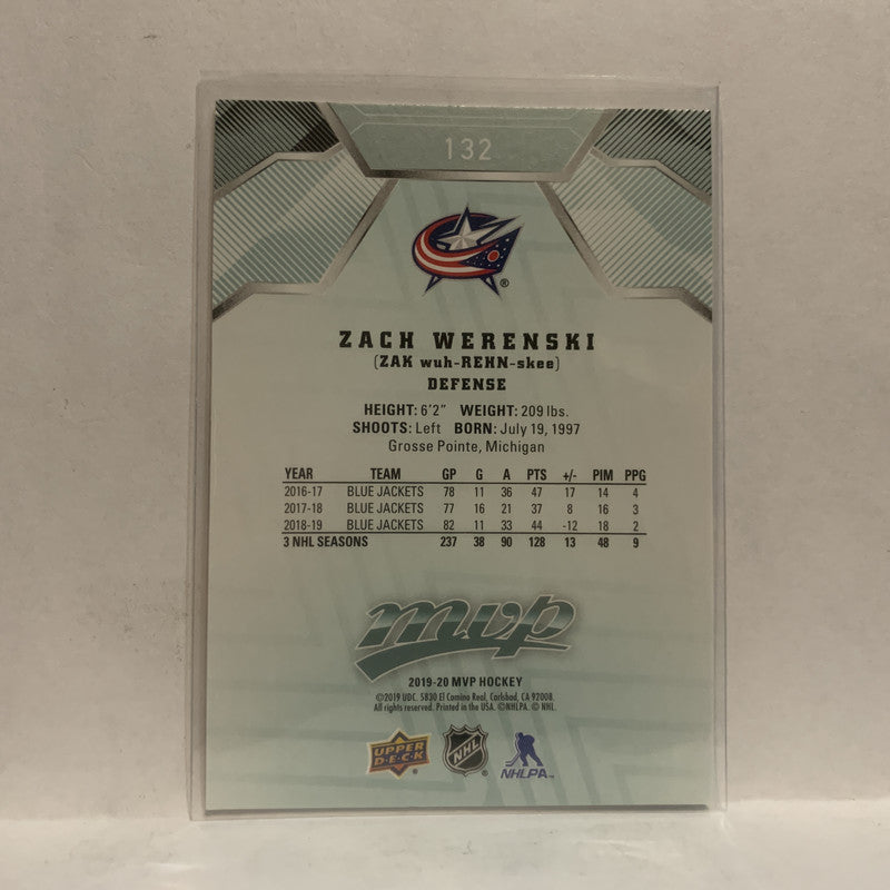 #132 Zach Werenski Columbus Blue Jackets 2019-20 Upper Deck MVP Hockey Card KO