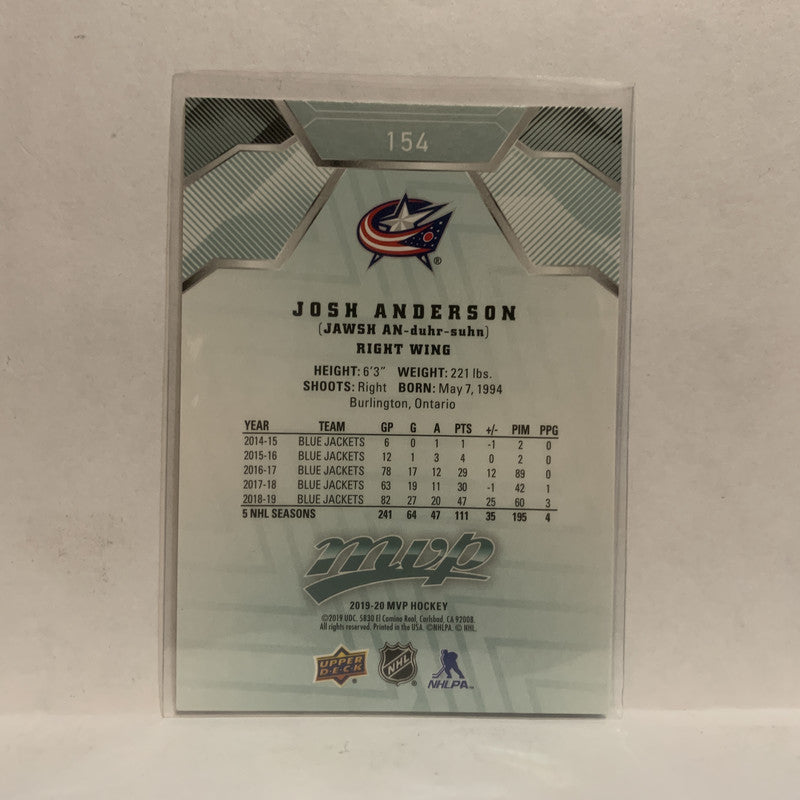 #154 Josh Anderson Columbus Blue Jackets 2019-20 Upper Deck MVP Hockey Card KO