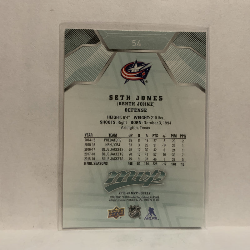 #54 Seth Jones Columbus Blue Jackets 2019-20 Upper Deck MVP Hockey Card KV