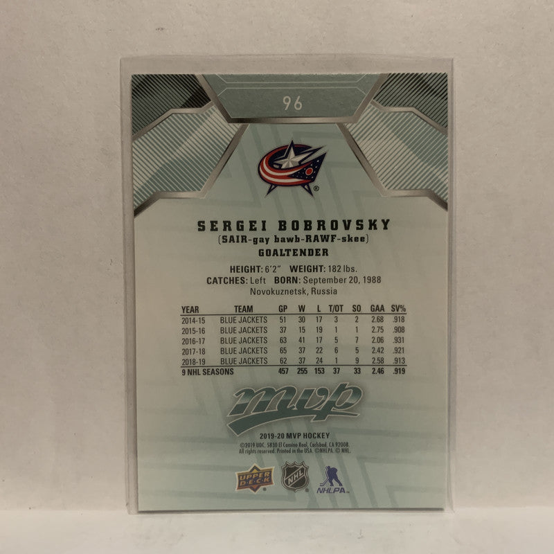 #96 Sergei Bobrovsky Columbus Blue Jackets 2019-20 Upper Deck MVP Hockey Card KY