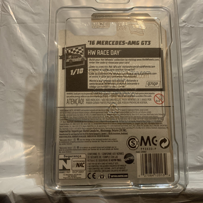 Blue '16 Mercedes-AMG GT3 HW Race Day 1/10 Hot Wheels Diecast New B1
