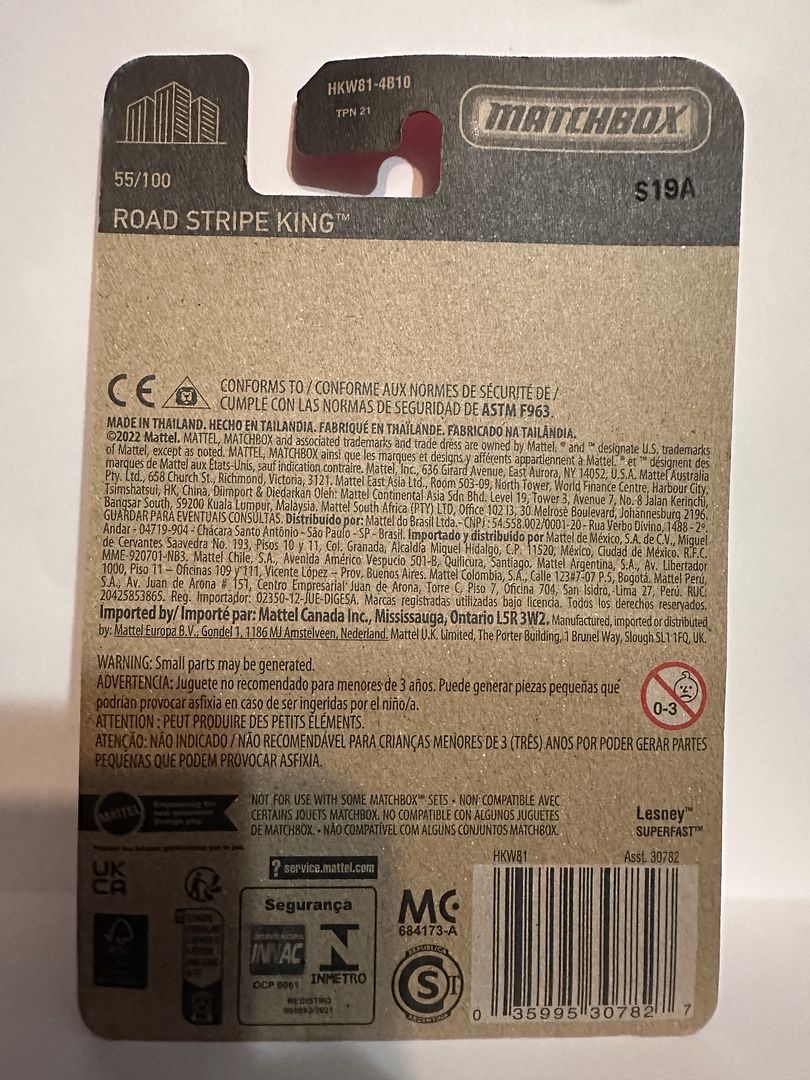 Blue Road Stripe King INC Construction 55/100 70 Years HKW81 ©2022 Matchbox Diecast Car