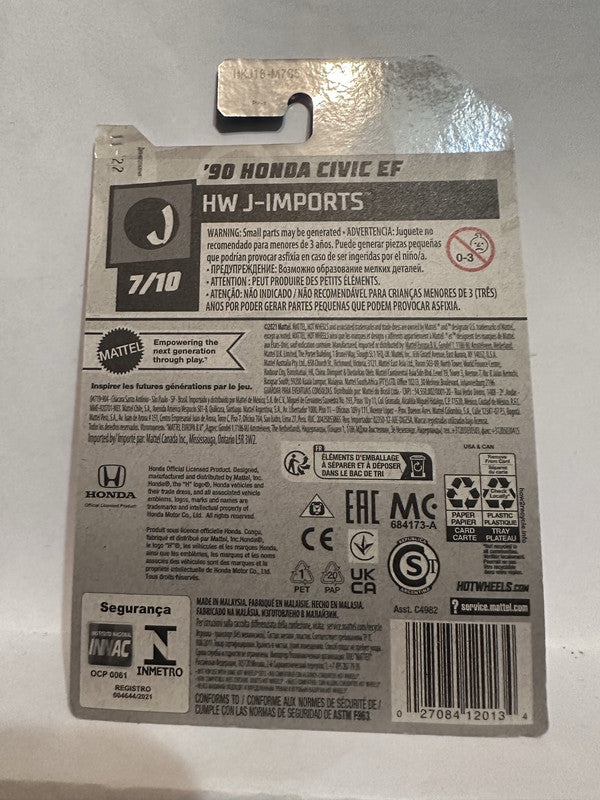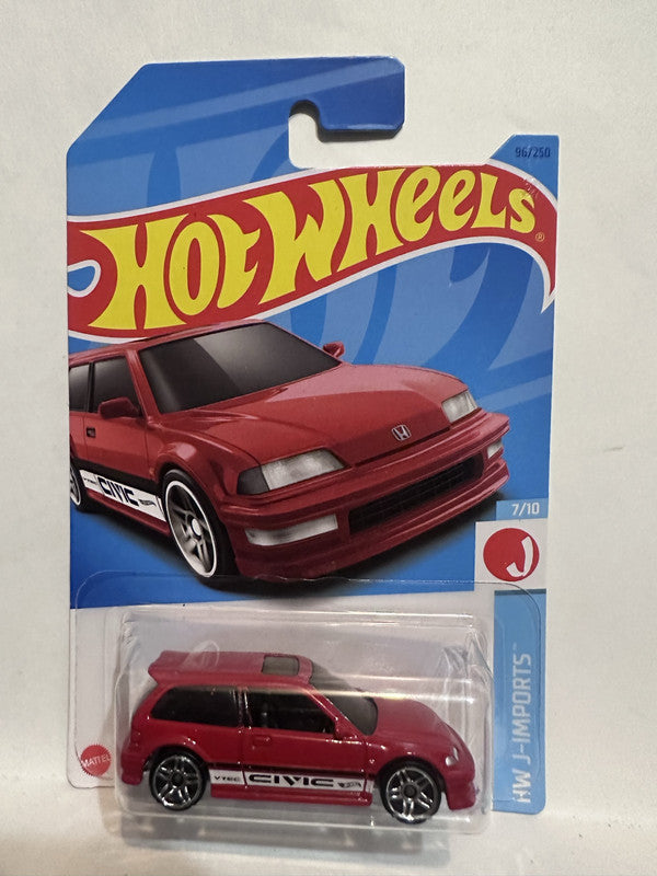 Red '90 Honda Civic EF HW J-Imports 7/10 96/250 HKJ16 2021 Hot Wheels Diecast Car