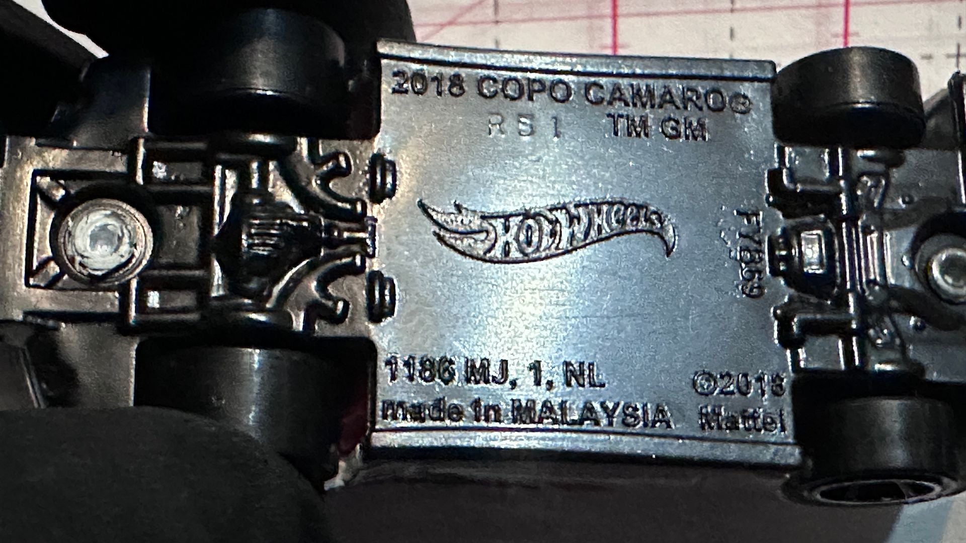 White 2018 COPO Camaro FY869 ©2018 Hot Wheels Diecast Car